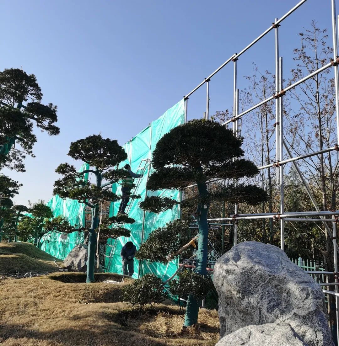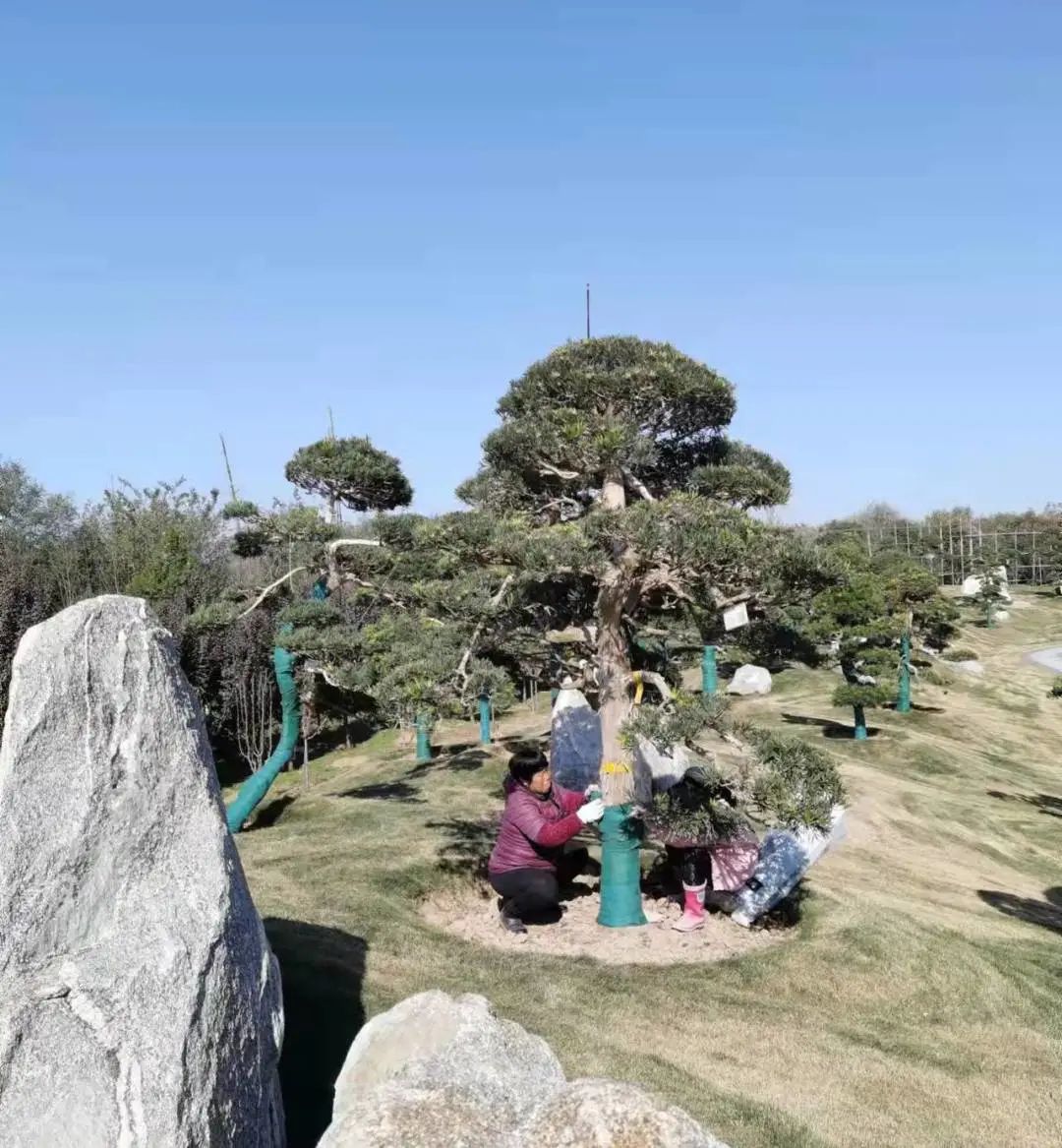 漂洋過海而來的羅漢松在基泰·上松苑迎來了第三個(gè)冬天,園林養(yǎng)護(hù)人員正在精心纏繞保溫保濕帶,為樹木安全越冬穿上“棉衣”。