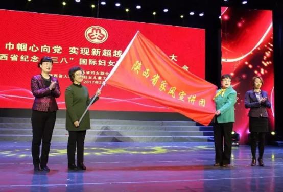 省婦聯(lián)副主席單紅和省文明辦綜合處處長(zhǎng)胡紀(jì)美為“陜西省家風(fēng)宣講團(tuán)”授旗