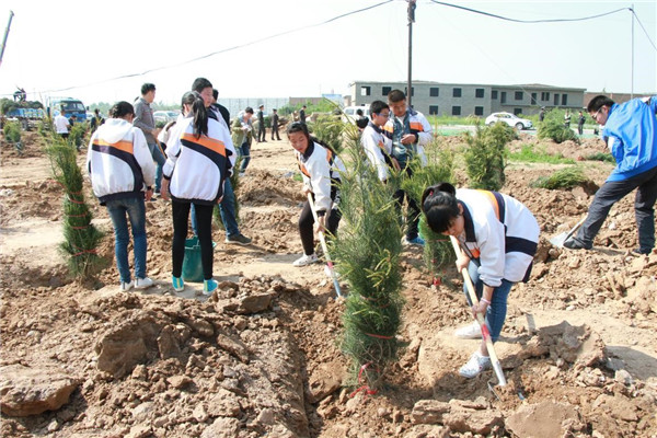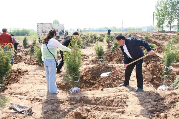 上午9:30分,植樹活動正式開始。高莊鎮(zhèn)政府相關(guān)干部、基泰集團全體人員與師生們一起揮動鐵鍬培土,提水澆灌樹木,一片忙碌景象。經(jīng)過一上午的辛勤勞動,近三百棵雪松整整齊齊的屹立在壽平村的土地上。盡管當(dāng)天氣溫有點高,但是高不過每一個參與者的熱情,當(dāng)大家看著自己親手種下的樹苗亭亭玉立于眼前時,所有的汗水和勞累都被拋之腦后,換來的無盡的欣慰和歡聲笑語。