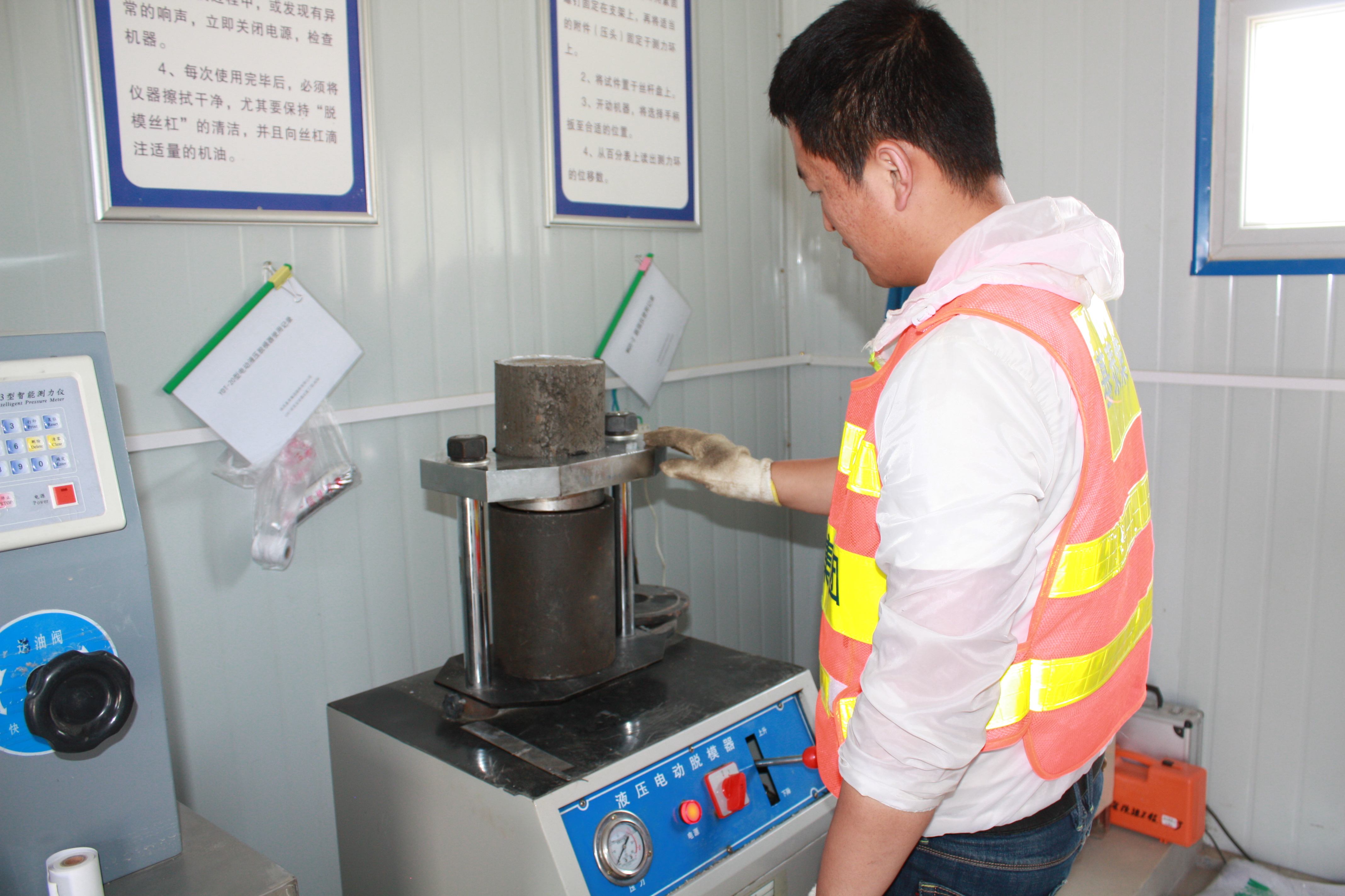 試驗員在做無側(cè)限抗壓強度試驗
