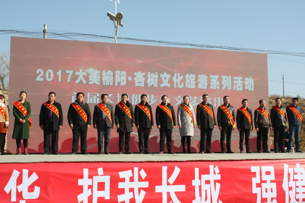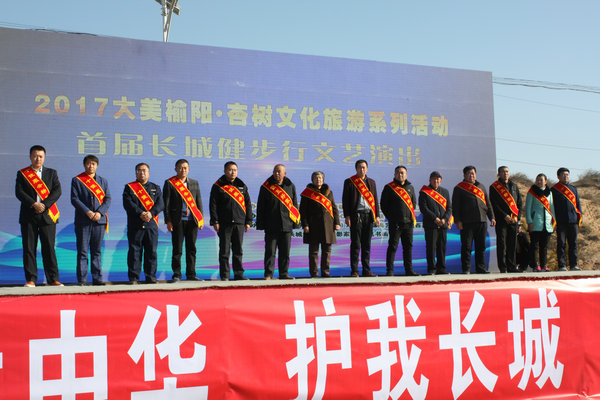 活動(dòng)以“愛(ài)我中華、護(hù)我長(zhǎng)城、強(qiáng)健體魄、振興鄉(xiāng)村、融合發(fā)展”為主題,以牛家梁鎮(zhèn)邊墻村為起點(diǎn),沿長(zhǎng)城大伙場(chǎng)村,途徑11個(gè)長(zhǎng)城烽火臺(tái)文化遺跡,最終達(dá)美麗富饒的常樂(lè)堡村,全程約10公里。出席開(kāi)幕式的各位領(lǐng)導(dǎo)也都積極參與其中,歷經(jīng)約2小時(shí)走完全程。