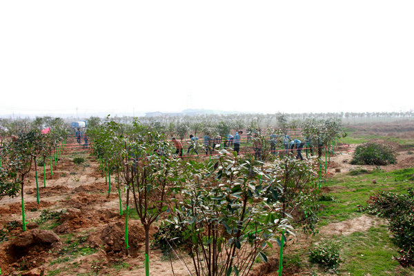 本次活動種植樹木為高桿石楠,其新梢和嫩葉鮮紅且持久,艷麗奪目,秋冬季節(jié),紅綠相間,極具觀賞價值,是綠化樹種中不可多得的紅葉系列的觀葉彩葉樹種。