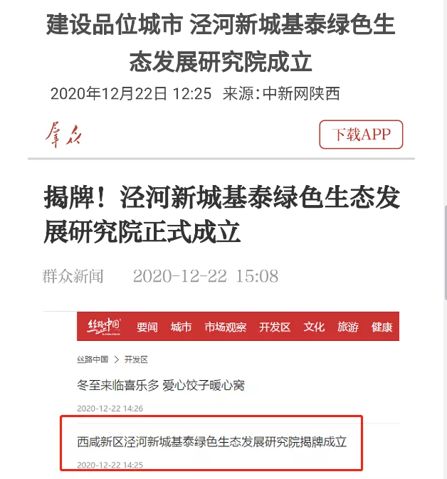 12月20日上午,以"綠色生態(tài)發(fā)展 構(gòu)筑美好生活"為主題的西咸新區(qū)涇河新城基泰綠色生態(tài)發(fā)展研究院揭牌儀式在涇河新城上松苑隆重舉行,這一消息得到了中省市20余家媒體的關(guān)注,30多個平臺紛紛轉(zhuǎn)載。