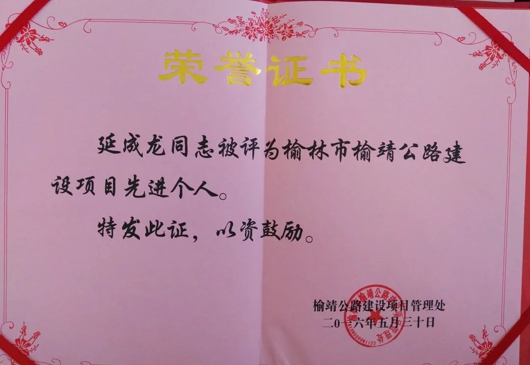 在2014年建設(shè)完成的榆林市環(huán)城北路榆溪河大橋,地形復(fù)雜,施工難度大,延成龍和他的團(tuán)隊(duì)攻克了大跨徑橋梁和市政管網(wǎng)工程施工的多項(xiàng)技術(shù)難題,被榆林市評(píng)為平安工地示范工程,公司獲得“質(zhì)量管理先進(jìn)單位”的榮譽(yù)。