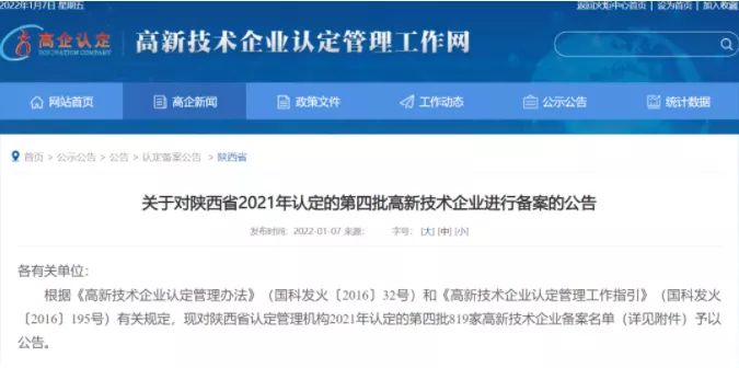 近日,科技部火炬中心官網(wǎng)發(fā)布了《關(guān)于對(duì)陜西省2021年認(rèn)定的第四批高新技術(shù)企業(yè)進(jìn)行備案公示的通知》,陜西基泰都市新農(nóng)業(yè)有限公司成功完成高新技術(shù)企業(yè)備案。此前,農(nóng)業(yè)公司已成功被陜西省科技部門認(rèn)定為科技型中小企業(yè)。本次通過(guò)高新技術(shù)企業(yè)備案,意味著農(nóng)業(yè)公司在科研工作開展、創(chuàng)新能力、人才儲(chǔ)備及科研投入產(chǎn)出等方面得到充分認(rèn)可,標(biāo)志著農(nóng)業(yè)公司在科技化轉(zhuǎn)型過(guò)程中邁出了重要一步,也彰顯了集團(tuán)體系內(nèi)以科技創(chuàng)新引領(lǐng)生產(chǎn)發(fā)展的決心。